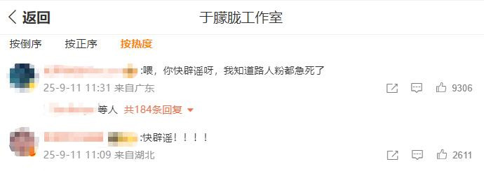 目前,#于朦胧#话题已爆,工作室仍未就传言发声,不少网友艾特@于朦胧工作室并到工作室博文下方要求尽快回应澄清。